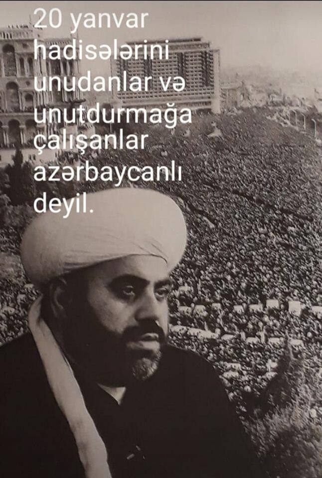 Bütün Qafqazın şeyxi Allahşükür Paşazadənin sosial şəbəkə hesabında 20 Yanvar şəhidlərinin dəfn mərasimindən fotonu “20 Yanvar hadisələrini unudanlar və unutduranlar azərbaycanlı deyil” sözləri ilə paylaşması böyük maraqla qarşılanıb.
