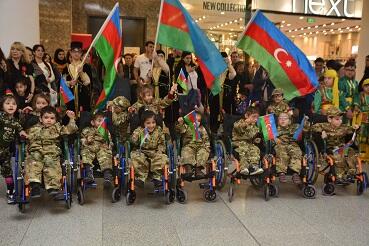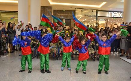 İzdihamın toplaşdığı mərkəzi hissədə daun sindromlu və serebral iflicli uşaqlar “Azərbaycan” mahnısının sədaları altında əllərində bayraqlar, əyinlərində milli geyimlərlə rəqs etməyə başlayıblar. Fləşmob ətrafdakı insanların böyük marağına səbəb olub.