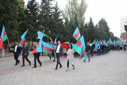 Bakı Dövlət Universitetinin Tələbə Gənclər Təşkilatının təşəbbüsü ilə 9 noyabr-Dövlət Bayrağı Günü ilə əlaqədar universitetin ərazisində yürüş keçirilib.