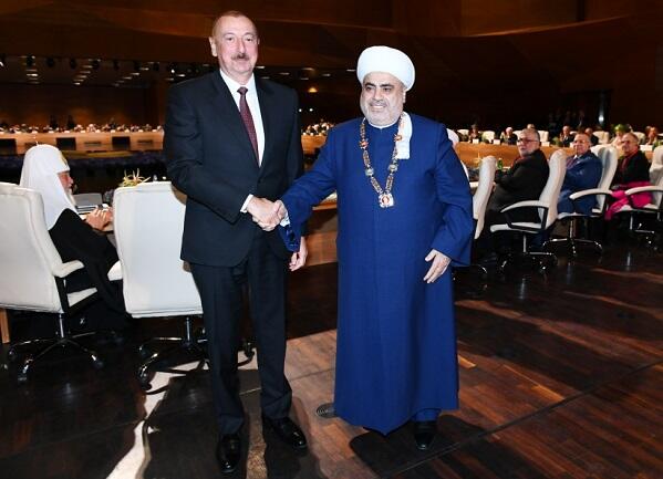 Bakıda belə mötəbər tədbirin keçirilməsi, hesab edirəm ki, təbiidir. Çünki Azərbaycanın qədim dinlərarası ənənələri vardır. Azərbaycan ictimai-siyasi quruluşundan asılı olmayaraq, bütün dövrlərdə bu istiqamətdə nümunəvi ölkə kimi özünü göstərmişdir. Əsrlərboyu ölkəmizdə bütün dinlərin, bütün etnik qrupların nümayəndələri bir ailə kimi sülh, mehribanlıq, dostluq, qarşılıqlı anlaşma şəraitində yaşamışlar. Azərbaycan çoxkonfessiyalı, çoxmillətli bir ölkədir və bu, bizim böyük sərvətimizdir. Dini və etnik müxtəlifliyimiz bizim böyük sərvətimizdir. Azərbaycanda uğurlu inkişafın, sabitliyin bərqərar olması istiqamətində atılmış bütün addımların arxasında dini və milli dözümlülük, tolerantlıq və multikultural dəyərlər dayanır. Bizim qədim tariximizi əks etdirən o cümlədən bizim dini abidələrimizdir. Bizim dini abidələrimiz, ilk növbədə, onu göstərir ki, Azərbaycan qədim diyardır. Digər tərəfdən onu göstərir ki, müxtəlif dövrlərdə müxtəlif dinlərin nümayəndələri Azərbaycanda yaşamış, yaratmış və gözəl tarixi miras qoymuşlar. Qeyd etməliyəm və biz fəxr edirik ki, İslam aləminin ən qədim məscidlərindən biri Azərbaycanda yerləşir. Şamaxı Cümə məscidi 743-cü ildə inşa edilmişdir, bir neçə il bundan əvvəl əsaslı təmir olunmuşdur. Bu məscid Dərbənd məscidindən sonra Qafqazın ən qədim məscididir.
