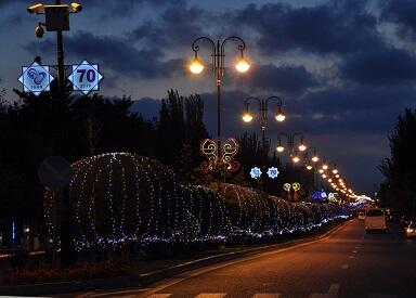 Çindən gələn bir qrup mütəxəssisin quraşdırdığı al-əlvan işıq qurğuları şəhərə xüsusi yaraşıq verir. Sayrışan işıqlarda Sumqayıt başqa bir gözəlliyə qərq olub. 70 illik yubiley münasibətilə bəzədilən şəhər öz sakinlərinə və bayrama axışan qonaqlara xoş ovqat bəxş edir.