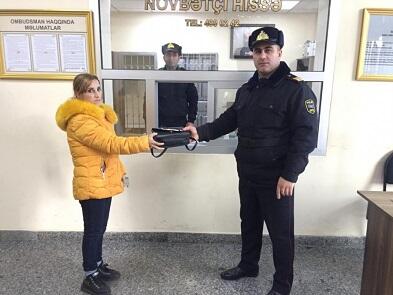 Noyabrın 29-da Göyçay rayon sakini A.Əliyeva qatarda əl çantasını itirməsi barədə Metropolitendə Polis Şöbəsinə müraciət edib. O, çantasında pul, qızıl-zinət əşyaları və sənədlərinin olduğunu deyib.