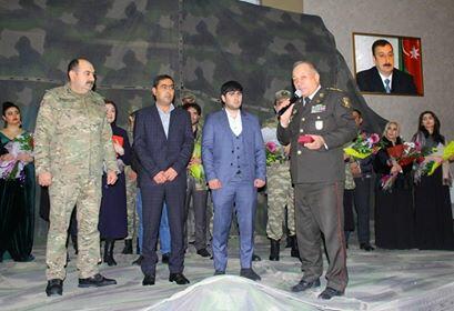 Sonra Azərbaycan Ordusunun ilk döyüşçülərindən biri, ehtiyatda olan gizir Qurbanov İsmayıl Cəlal oğlunun da tamaşaçılar arasında olduğu bildirilib. Nəzərə çatdırılıb ki, o, könüllü olaraq əsgər gedəndə çox gənc idi.
