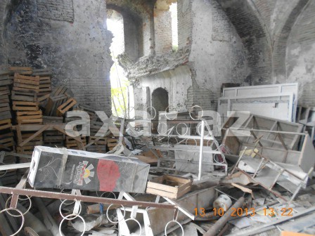 Kilsənin içində zir-zibil, taxta-şalban yığılıb.