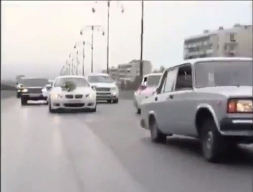 Bakıda hərəkət edən toy kortejində həyəcanlı anlar