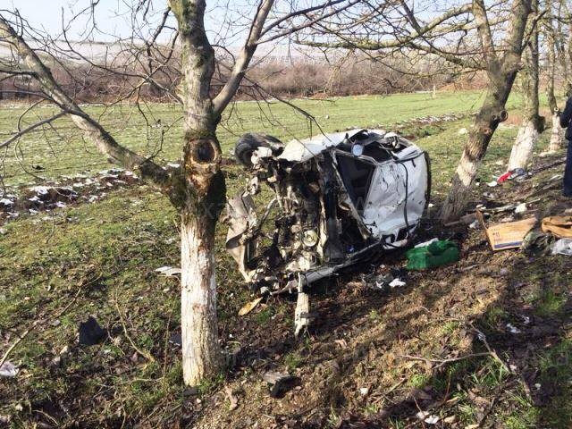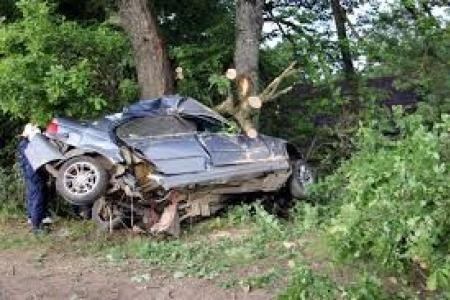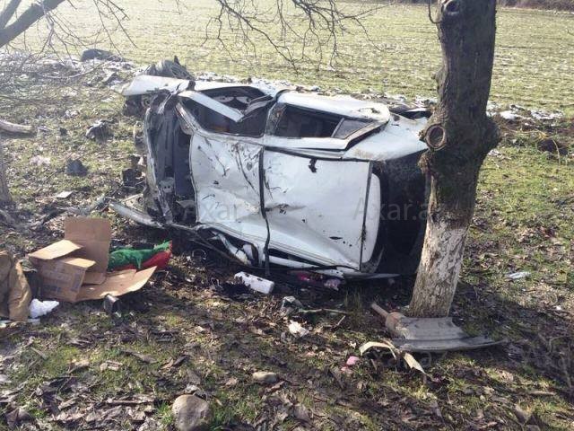 markalı minik maşını yoldan çıxaraq ağaca çırpılıb və aşıb. Sürücü