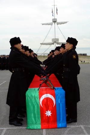 rituala uyğun olaraq döyüş bayrağı sıra meydanına gətirilmiş,