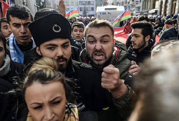 Türkiyədə erməni işğalına etiraz olunub. İstanbulun Bəyoğlu Galatasaray Meydanında toplanan Milliyətçi Türkiyə Partiyası və Turan Ocaqları üzvləri aksiya keçirib.