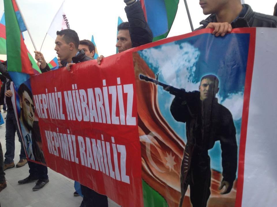 qarabağlıyıq", "Hamımız azərbaycanlıyıq" şüarları qışqırıblar.