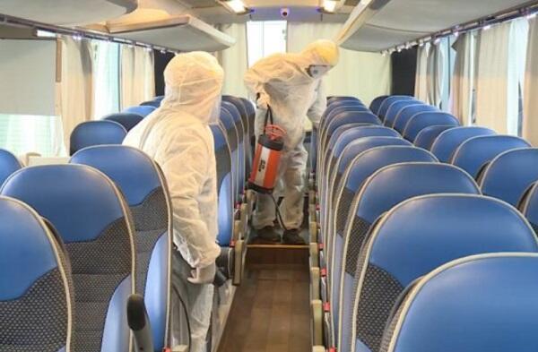 Həm şəhərlərarası, həm də beynəlxalq istiqamətlər üzrə hərəkət edən avtobuslarda 3 gündən bir aparılan dezinfeksiya işləri yaranan vəziyyətlə bağlı hər gün yerinə yetirilir.