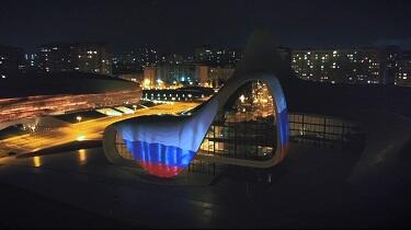 Aprelin 9-da Heydər Əliyev Mərkəzinin binası üzərinə Rusiya Federasiyasının bayrağı videoproyeksiya olunub.