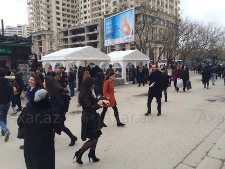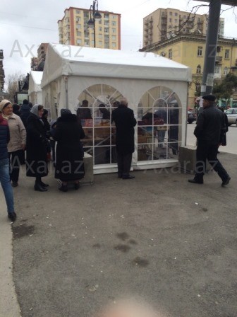 "İçərişəhər" stansiyalarının qarşısında qurulan kiçik çadırlar