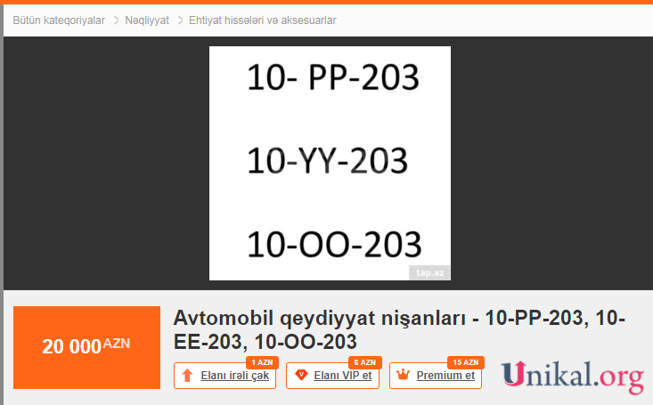 Daha sonra isə qəza törətdiyi avtomobilin 10 PP 203, “Porşe” 10 YY 203, “Niva” 10 OO 203 dövlət nömrə nişanlarını 20 min AZN-ə satışını həyata keçirib.
