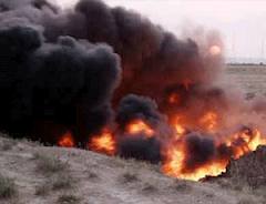 Hadisə yeri üzərində alovlar yüksəlib. Kənd əhalisi təşvişə düşüb.