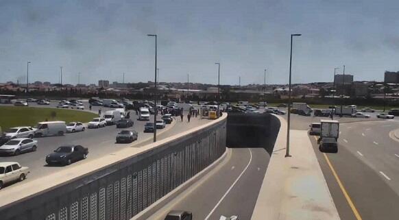 Axar.az xəbər verir ki, hadisə "Koroğlu" metrostansiyası istiqamətində Olimpiya Stadionunun qarşısında yaşanıb. Qəza səbəbindən yolda sıxlıq müşahidə edilir.