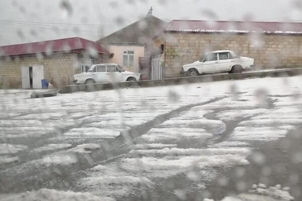 Axar.az Trend-ə istinadla xəbər verir ki, əvvəlcə sulu qar formasında başlayan yağıntı daha sonra doluya çevrilib.
