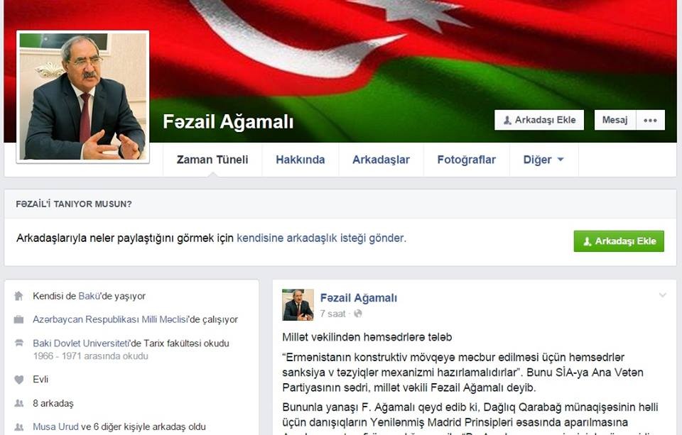 Millət vəkili Fəzail Ağamalının sosial şəbəkədə profil səhifəsi fəaliyyət göstərir.
