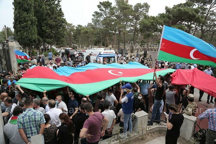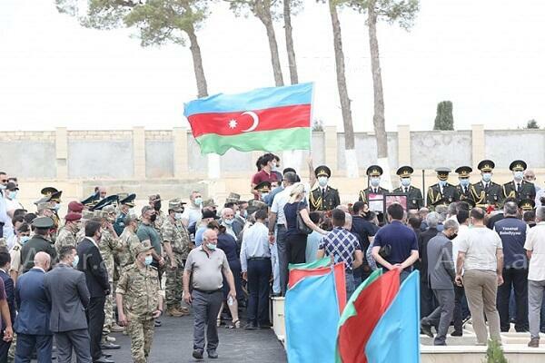 Hərbi Okestrin ifa etdiyi Azərbaycan Respublikasının Dövlət Himninin sədaları ilə şəhidlərimiz əsgəri ənənələrə uyğun olaraq yayılım atəşləri altında son mənzilə yola salınıb.