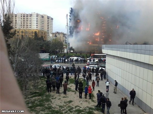 mənzil və prospektə baxan hissədəki bir neçə eyvan yanıb".