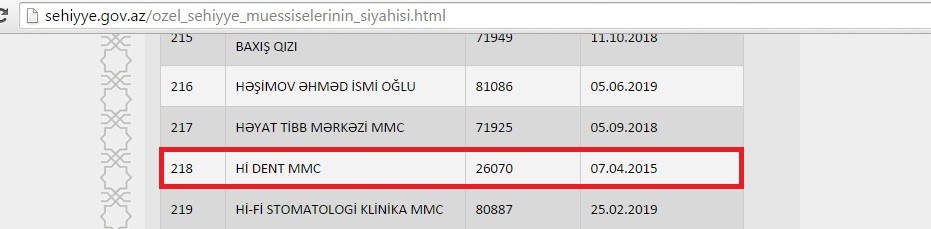 4. Hi Dent MMC - Bakı ş., Xətai r-nu, Y.Səfərov-18; lisenziyanın