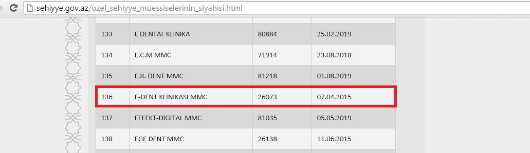 1. E-Dent Klinikası MMC - Gəncə ş., Cavadxan-22; lisenziyanın