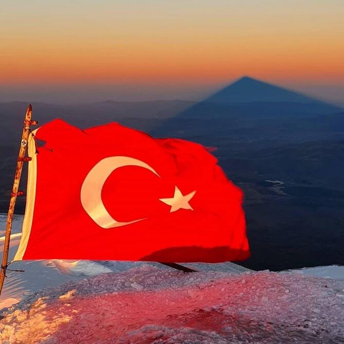 Türkiyəli alpinist Ərkan Yücel Azərbaycan və Türkiyənin dövlət bayraqlarını Ağrı dağının zirvəsində dalğalandırıb. Alpinist Ağrı zirvəsinə aparan 5137 metr yolu 5 günə qət edib.