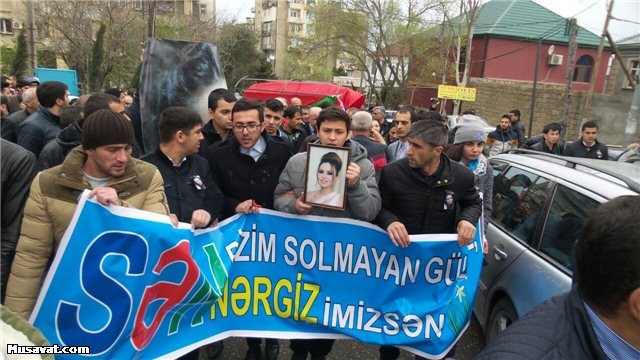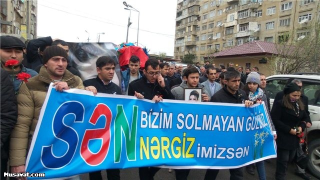 Mərhum Nərgizin dostları, gənclər təşkilatlarındakı yoldaşları onun üçün transparant hazırlayıblar: "Sən bizim solmayan gülümüz, NƏRGİZİMİZSƏN".