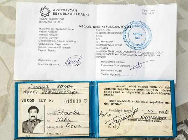 Axar.az xəbər verir ki, polkovnik xaricdə yaşayan övladlarının onun ehtiyacı üçün göndərdiyi və öz təqaüdündən topladığı 50 min manat pulu Silahlı Qüvvələrə Yardım Fonduna ianə edib.
