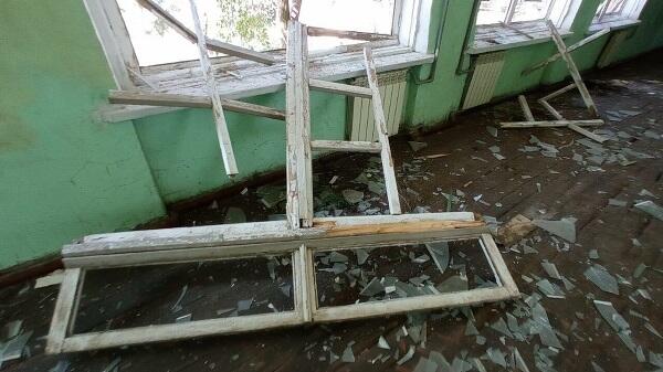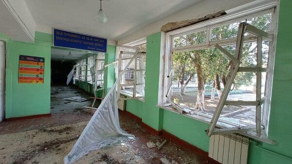 Axar.az xəbər verir ki, binanın bütün qapı və pəncərələri sınıb.