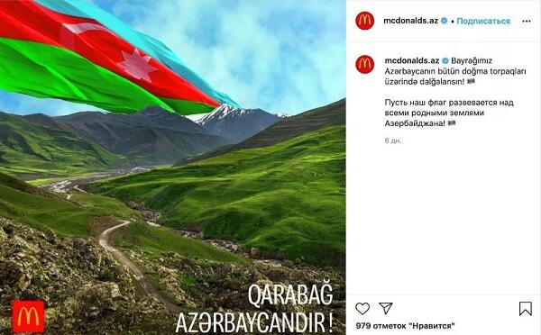 “Makdonalds” restoranlar şəbəkəsinin Azərbaycan şöbəsi Ordumuzun Dağlıq Qarabağda hərbi əməliyyatlarını dəstəkləyib.