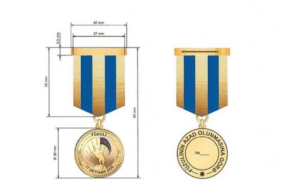 Axar.az-ın məlumatına görə, “Füzulinin azad olunmasına görə” medalı ilə Azərbaycan Respublikasının Füzuli rayonunun işğaldan azad edilməsi uğrunda aparılmış döyüş əməliyyatlarında iştirak etmiş Azərbaycan Respublikası Silahlı Qüvvələrinin hərbi qulluqçuları təltif edilir.