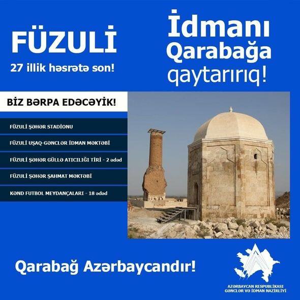 Gənclər və İdman Nazirliyi azad olunmuş Füzuli rayonunun işğaladək mövcud olmuş idman obyektlərinin siyahısını tərtib edib.