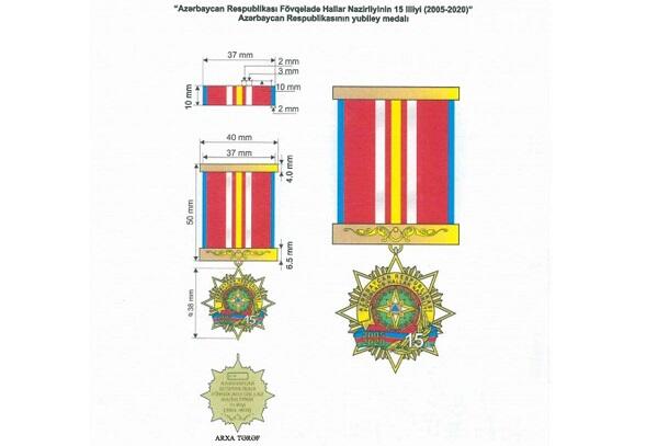 “Azərbaycan Respublikası Fövqəladə Hallar Nazirliyinin 15 illiyi (2005-2020)” Azərbaycan Respublikasının yubiley medalının təsviri” təsdiq edilir.