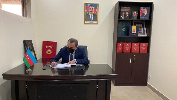Bildirilir ki, nazir Ümumilli lider Heydər Əliyevin büstü önünə tər çiçəklər düzüb və Səfirliyin xatirə kitabına ürək sözlərini yazıb.