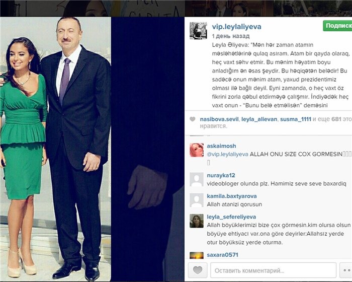 Publika.az xəbər verir ki, bu barədə Azərbaycan prezidentinin qızı Leyla Əliyeva İnstagram səhifəsində yazıb.