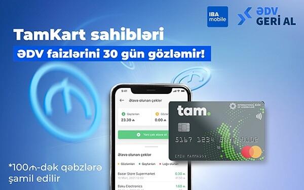 Bunun üçün müştəri sadəcə alış-verişdən sonra ona verilmiş qəbzi https://edvgerial.ibar.az portalında və ya IBA Mobile tətbiqində oxutmalıdır. Müştərinin bu kampaniyadan yararlanmaq üçün sadəcə TamKart debet və ya kredit kart sahibi olması yetərlidir. Onun alış-verişlərinə görə ödənişləri TamKartla aparması mühüm deyil. Kampaniya TamKart sahibinin həm müxtəlif kartlarla apardığı nağdsız alış-verişlərin, həm də nağd ödənişlərin ƏDV faizlərinə aiddir. Nağd ödənişlərdə ƏDV faizinin 10%-i, nağdsız ödənişdə isə 15%-i geri qayıdır. TamKartlılar üçün keçirilən bu kampaniya 6 aprel tarixinədək davam edəcək.