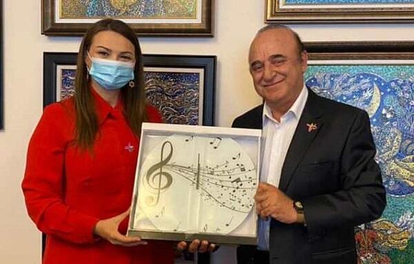 Q.Paşayeva Y.Zurufçuya Qarabağ motivli xatirə hədiyyələri təqdim edib.