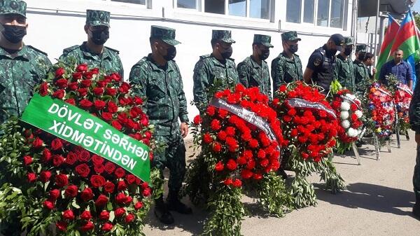 Dövlət Sərhəd Xidmətinin İran-Azərbaycan sərhədində baş verən silahlı insident nəticəsində şəhid olan Samir Eyvazov son mənzilə yola salınır.