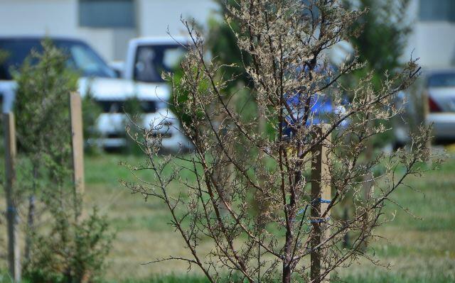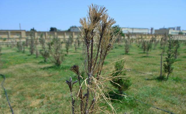 Binəqədi Rayon Məhkəməsinin qarşısında Vətən müharibəsi şəhidlərinin xatirəsini əbədiləşdirmək üçün əkilən 2900 ağacdan bəziləri suvarılmadığı üçün quruyub.