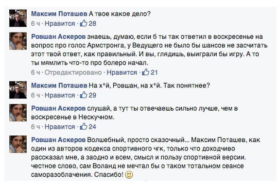 Axar.az xəbər verir ki, oyunçular arasındakı söz atışması Feysbuk şəbəkəsində ortaya çıxıb.