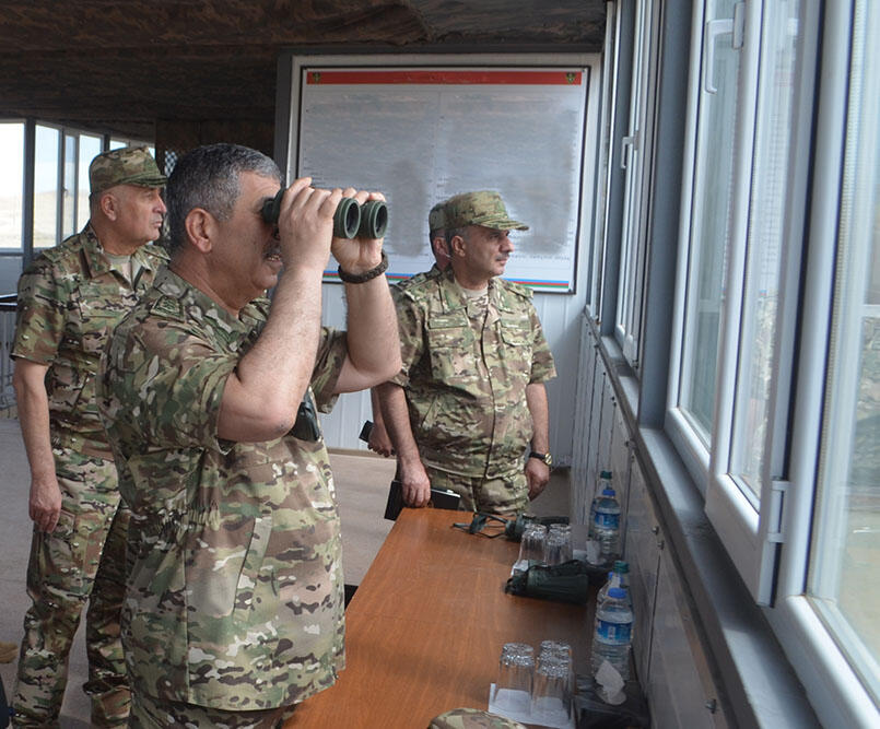 Müdafiə naziri general-polkovnik Zakir Həsənov və nazirliyin digər rəhbər heyəti zabit heyətinin ixtisasartırma və təkmilləşdirmə kurslarının gedişi ilə maraqlanmaq üçün ümumqoşun poliqonlarından birinə gəliblər.