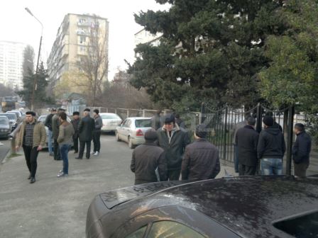 yerləşən İdarənin qarşısında valideynlər və çağırışçılar