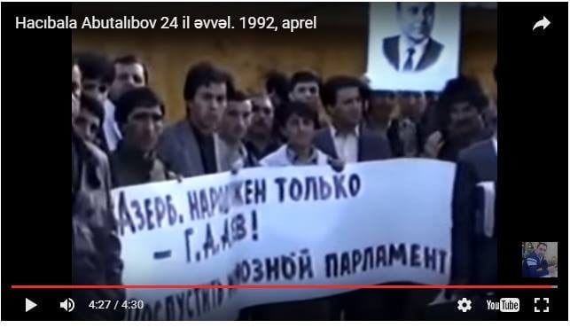 O bildirib ki, başqalarının zəhməti hesabına özünə karyera quran Hacıbala Abutalıbov 30 il bundan qabaq guya öz tərəfdarları ilə birlikdə Heydər Əliyevi müdafiə etməsi barədə video-görüntüləri yenidən mətbuata servis etməkdədir: