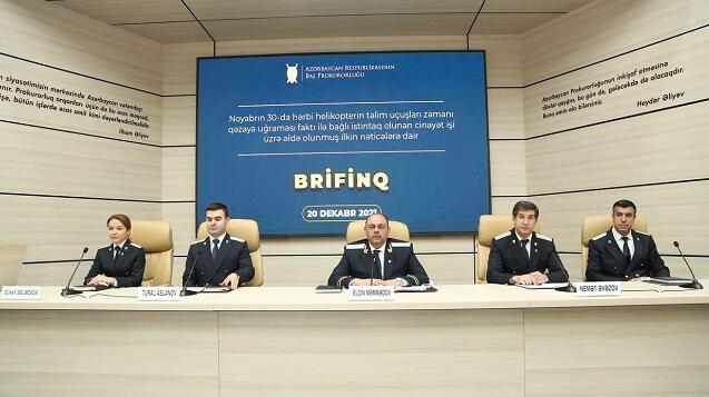 Baş prokurorun birinci müavini, III dərəcəli dövlət ədliyyə müşaviri Elçin Məmmədov, Baş Prokurorluğun İstintaq idarəsinin rəisi, baş ədliyyə müşaviri Nemət Əvəzov, qurumun İstintaq idarəsinin rəis müavini, o cümlədən helikopter qəzası ilə bağlı yaradılan İstintaq qrupunun rəhbəri, ədliyyə müşaviri Sənan Paşayev, Baş prokurorun xüsusi tapşırıqlar üzrə böyük köməkçisi, ədliyyə müşaviri Tural Aslanov və qurumun Mətbuat xidmətinin rəhbəri, kiçik ədliyyə müşaviri Günay Səlimzadə hadisə ilə bağlı sualları cavablandırıblar.