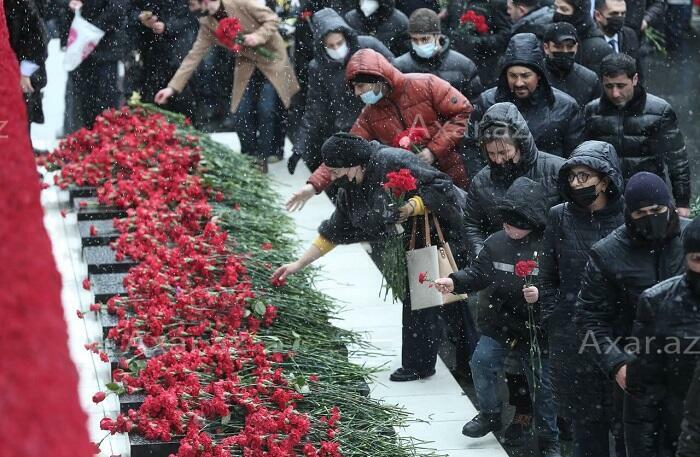 Axar.az xəbər verir ki, hazırda dövlət və hökumət nümayəndələri, xarici ölkə səfirliklərinin nümayəndələri, ictimaiyyət təmsilçiləri, ziyalılar, QHT sektorunun təmsilçiləri, tələbələr və ictimai rəy liderləri, hərbçilər, qazilər, bir sözlə, Azərbaycan xalqının bütün təbəqələrini əhatə edən insan izdihamı 20 Yanvar şəhidlərinin uyuduğu Şəhidlər Xiyabanına axışır.