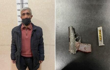 Onun üzərinə baxış keçirilən zaman 1 ədəd “Makarov” markalı tapança, 8 ədəd patron və daraq aşkar edilərək götürülüb.