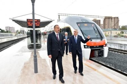 İlham Əliyev Bakı sərnişin stansiyasında Bakı-Sumqayıt marşrutu ilə