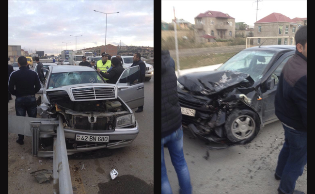 Bu gün axşam saatlarında Bakı-Sumqayıt yolunun Masazır ərazisində avtomobil qəzası baş verib. 42-BN-680 nömrə nişanlı "Mersedes"lə 99-EJ-329 nömrəli avtomobil toqquşub.