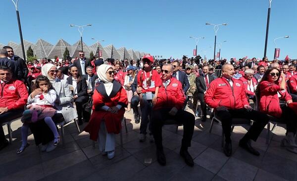 Prezidentlər İlham Əliyev, Rəcəb Tayyib Ərdoğan, birinci xanımlar Mehriban Əliyeva və Əminə Ərdoğan, qardaş ölkələrimizin rəsmi nümayəndə heyətləri və festival iştirakçıları aviaşounu izləyiblər.