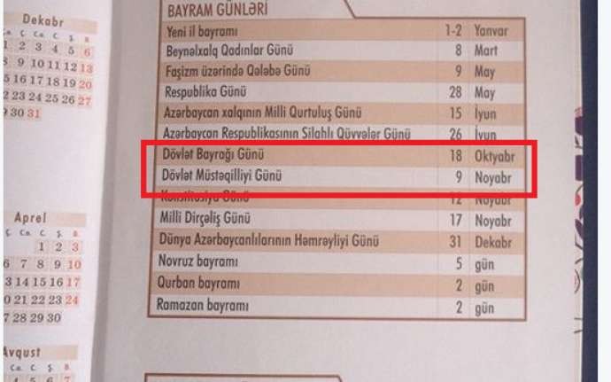 Günü" kimi qeyd olunur. "Dövlət Bayrağı Günü" isə 18 oktyabr olaraq